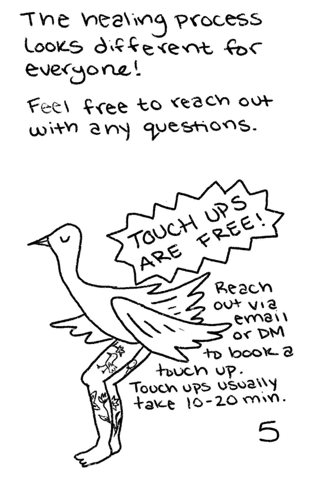 Touch-ups are always free and usually take less than 10 minutes! If your tattoo needs a touch-up, please reach out via email (jacofsometrades@gmail.com) and I’ll get your scheduled!
