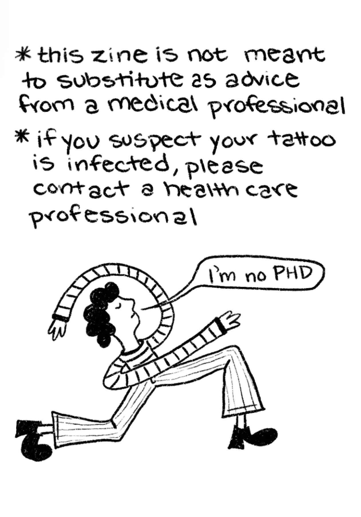 In very rare cases, even the best cared for tattoos may develop an infection. This could look like a yellow-green tinge, hot, painful, irritated, and/ or extreme redness (note: some redness is expected in the first day or two). If you are experiencing an infection, please reach out to a doctor and notify your tattoo artist. If you are uncertain, please reach out to your artist with photos so they may provide advice.